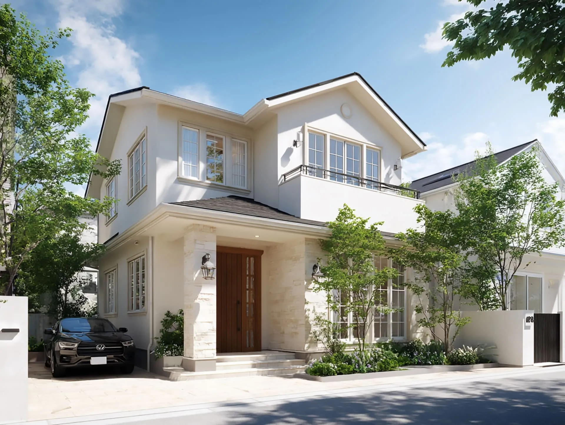 ホワイトは王道カラー。外観全体が明るくなり、家が大きく見える効果もあります。しかしながら真っ白は汚れが目立ちやすいため、アイボリーやオフホワイトを選ぶケースも多いです。防汚性能の高い塗料を選ぶと安心でしょう。